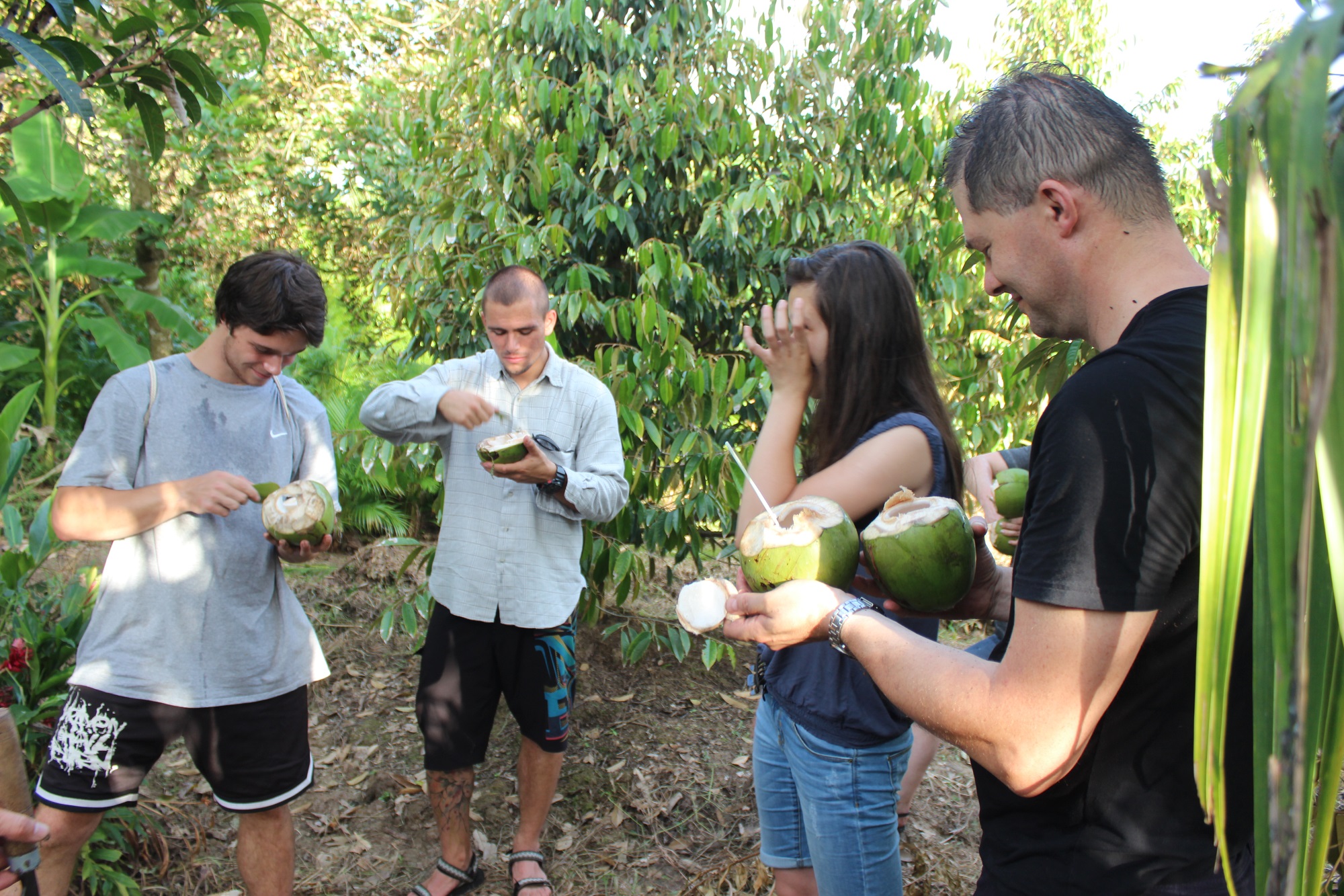 - 13:00: Enjoy local lunch and drink fresh coconut water at local people's house and have a quick look at some tropical fruits in the garden. After that, riding bike back to our car.